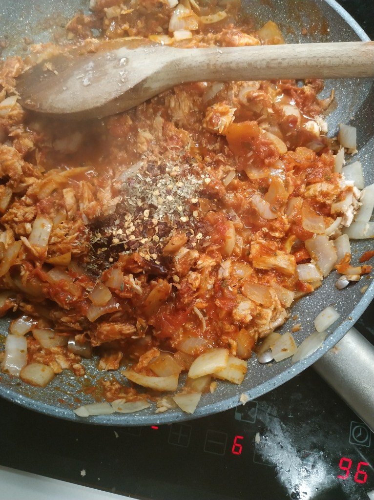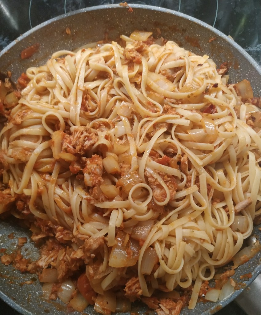 And so I tweak this recipe to be palatable to my liking. I like my pasta with protein or vegetables, so I added canned tuna to the pasta. Hence, a dish that was traditionally an entree becomes filling as a main course. I also added more red chili flakes and dried oregano for an extra punch of flavour.