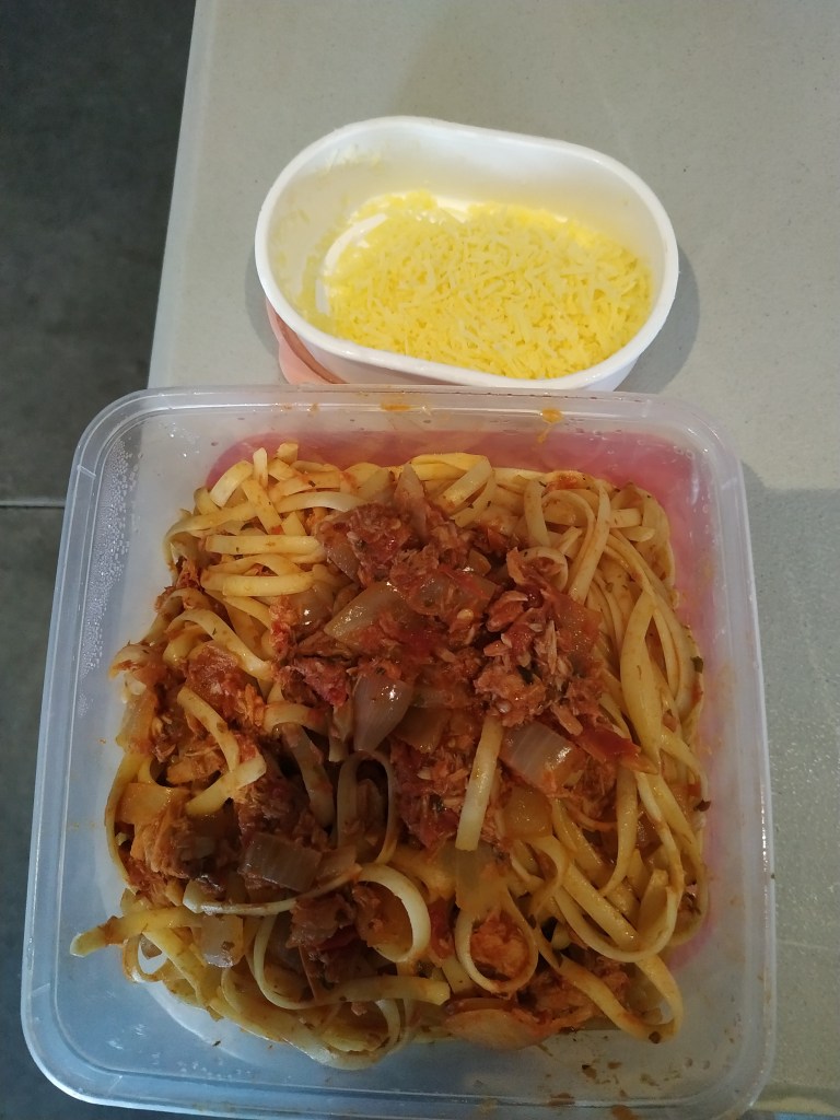 As I brought it to the food fair, I plated it on a red container, to match the theme, with parmesan on the side. It was simpler than the dishes that other students brought, but some people enjoyed it. Ultimately, pasta, whatever the type, is comfort food that can never go wrong.
